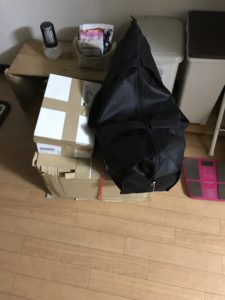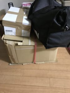 右上の黒い鞄は、着なくなった服などをZOZOTOWNに買い取ってもらうやつです。
