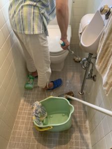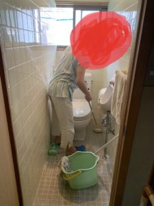 お母さんが急にトイレ掃除!!
