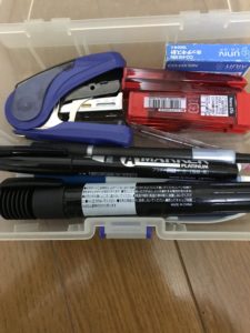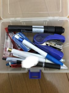 ホッチキスなどの使用頻度の少ない文具も入っています。