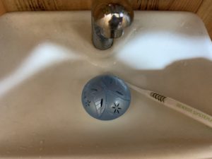 トイレ用洗剤でつけ置き。
