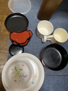 古い食器、捨て。